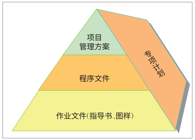 将先进、科学的项目管理技术应用到工程项目建设管理实践中,不断提升业主(建设单位)方的工程项目管理水平,确保工程项目建设取得成功,推动工程建设行业技术进步,是PMC的应有之义。北京创新瑞成工程项目管理有限公司(以下简称“北京创新瑞成公司”)项目管理团队,历经20年的不懈努力,运用现代项目管理学的科学原理,结合工程项目建设阶段组织与管理的客观规律,进行深度研究和精准对接,形成了一批具有较强实用价值的专业化先进项目管理技术,并已成功运用于大、中、小型工程项目的建设管理实践,既为业主取得项目成功提供了优质项目管理服务,也为推动我国工程建设行业项目管理水平的整体提升作出了积极贡献。现结合北京创新瑞成公司实践,简要介绍几种重要的项目管理技术及其应用方法。构建项目管理体系是PMC在项目定义阶段的主要工作,项目管理体系的核心内容是文件。科学、先进、适用、完整的项目管理体系文件,是PMC(项目管理公司)专业化工程管理能力的综合体现,是PMC团队能够高效运转的基础。项目管理体系及其文件具有以下几个方面的特征:一是文件化结构。项目管理体系文件分为项目管理方案或手册、程序文件、作业文件三个层次,并通过适时制定专项计划进行补充和扩展(图2)。