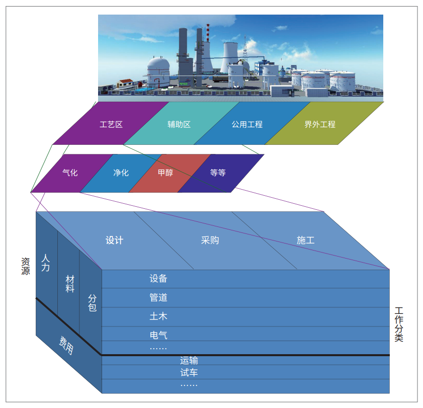 WBS原理:WBS(工作分解结构)是一种基础性工程数据管理技术,是实施科学、量化的项目控制的一种手段。当项目工作范围确定后,将项目自上而下进行分解,得到一个树型的层次结构,这个结构的最底层是众多的工作项,每一个工作项都是一个可管理的最小单元,这样就形成了工作分解结构。工程项目WBS:将WBS原理转化应用于工程建设项目,可根据管理强度需要,对工程工作进行适当分解。准确的WBS,将使庞大复杂的工程项目变得清晰和可控(图6)。