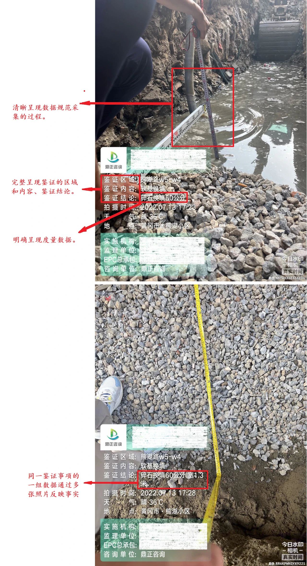 现场鉴证照片是再现工程现场施工质量、安全、隐蔽工程等实际施工情况的重要证据,是各项目施工阶段工程监理、全过程造价咨询、结算审核以及解决工程纠纷提供有价值的支撑材料,是筑好每一个项目,夯实鼎正服务品质的基石。