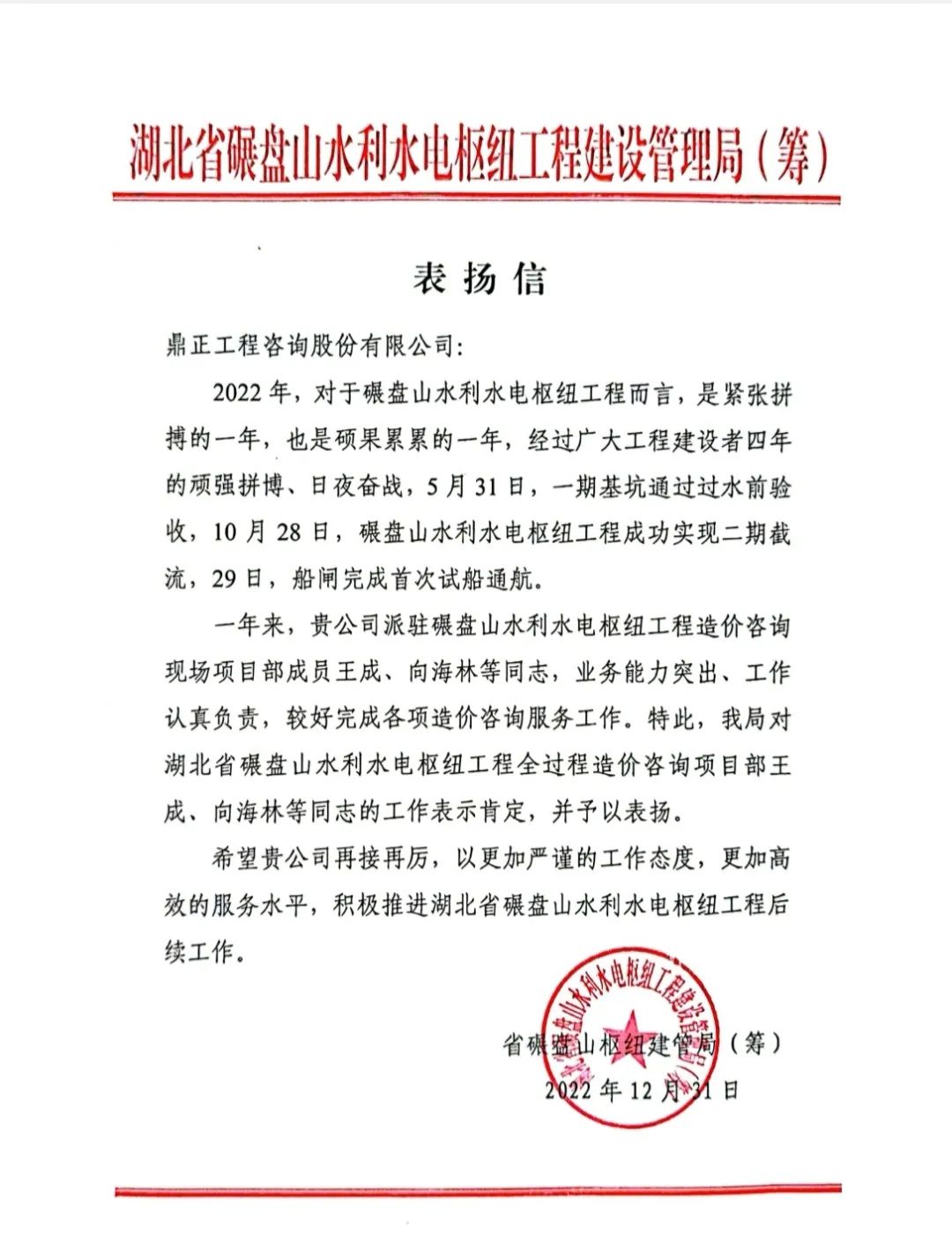 碾盘山水利水电枢纽工程,是国务院确定的172项节水供水重大水利工程之一。鼎正作为该项目的全过程造价咨询单位,积极主动推进工程进度,在2022年度共计出具各类报告35份,助力碾盘山项目二期围堰截流和船闸试通航的关键节点交付。工程变更往往带来工程量与价的变化,从而影响工程造价,在全过程造价咨询服务过程中,我们多次深入现场进行实地勘察计量,主动推进过程结算,及时处理施工过程中的变更签证,并为帷幕化学灌浆费用节省工程投资的38%。同时,我们加强对各工程建设的事前、事中、事后监管,及时归集整理项目相关技术经济资料,做到“一户一档”,为项目稳步推进打下了良好基础。