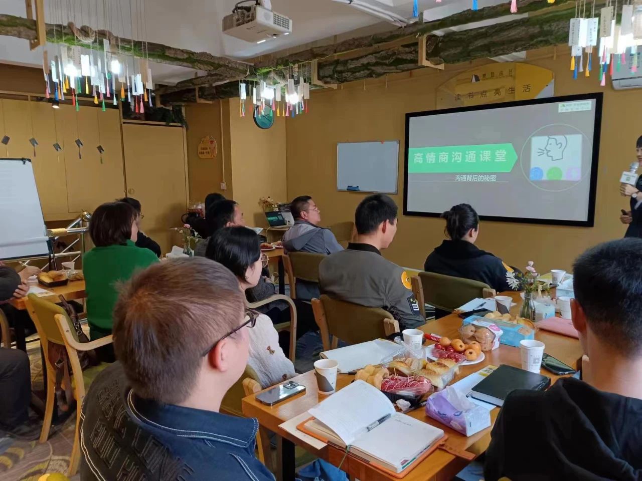 日常社交生活中,我们总会遇到一些需要提升沟通技巧的场景,如何高情商应对?4月1日下午,帆书•恩施运营中心陈老师为大家带来了干货满满的《高情商沟通》提升课程。陈老师结合书中观点与案例,教大家在工作和生活中运用“高情商”沟通技巧,提升说话情商,用正确的表达方式达成沟通的目标。活动现场还设计了一些实用社交场景,如“如何在客户面前更好的表达自己的诉求”、“如何委婉地拒绝他人”等……场面激烈热闹。