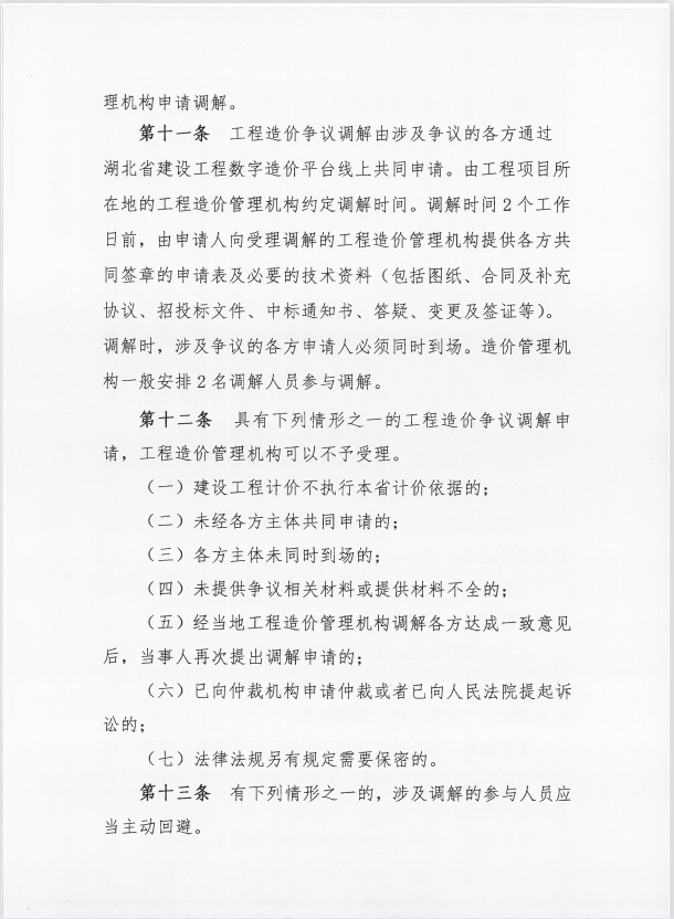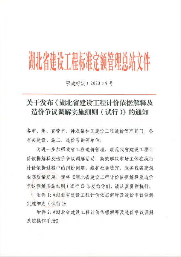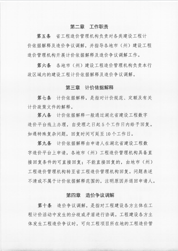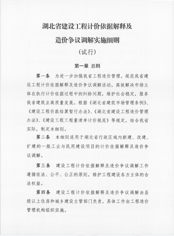 《湖北省建设工程计价依据解释及造价争议调解实施细则(试行)》