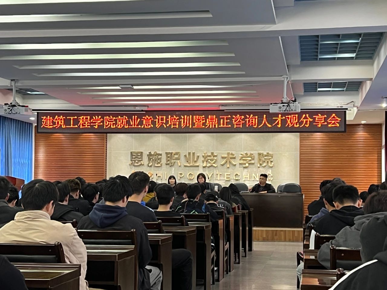 4月6日,鼎正恩施分公司总经理彭萍受邀前往恩施职业技术学院建筑工程学院,为应届毕业生带来了《关于就业意识培训暨鼎正咨询人才观》分享会。