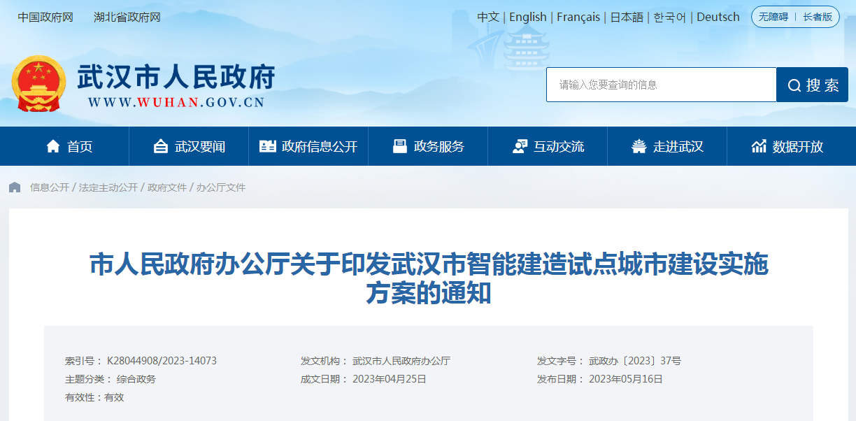 武汉市智能建造试点城市建设实施方案