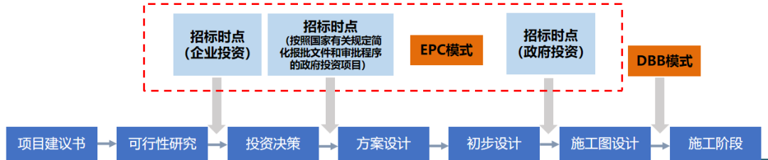 基于国内“弱信任”的市场环境,政府投资项目以初步设计为招标节点,从而将EPC项目的设计分为招标前和招标后两阶段,第一个阶段是业主委托设计院进行方案设计和初步设计,第二阶段是总承包商中标后进行施工图设计。