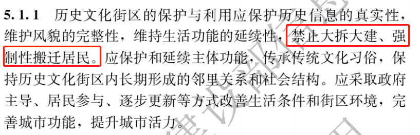 2、历史文化街区的保护与利用应保护历史信息的真实性,维护风貌的完整性,维持生活功能的延续性,禁止大拆大建、强制性搬迁居民。