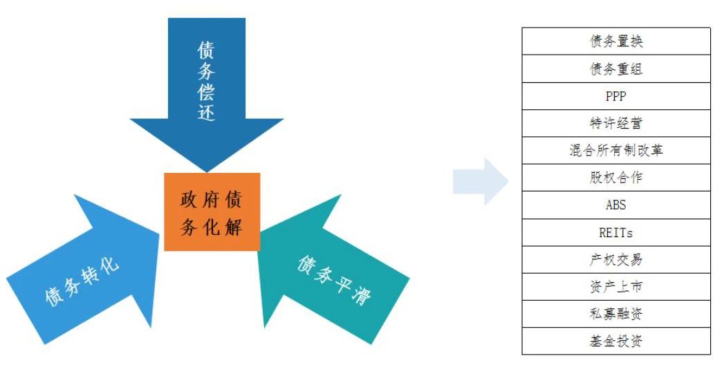 债务偿还是指地方政府或国企平台通过存量资产盘活、财政资金、国资增收等方式直接清偿化解地方政府隐性债务。在当前政府可用财力紧张的情况下,如何实现政府存量资产的有效盘活是关键。