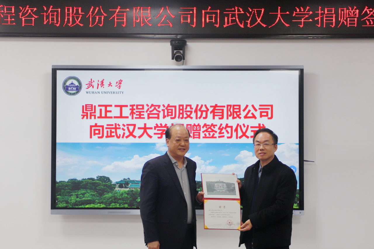 2024年1月10日,鼎正与武汉大学土木建筑工程学院捐赠仪式在武汉大学举行。鼎正向武大土木建筑工程学院捐赠100万元,设立“鼎正实习实践优秀奖学金”,旨在鼓励青年学子勇于创新、积极实践,助力武大土木建筑工程学院进行人才培养。