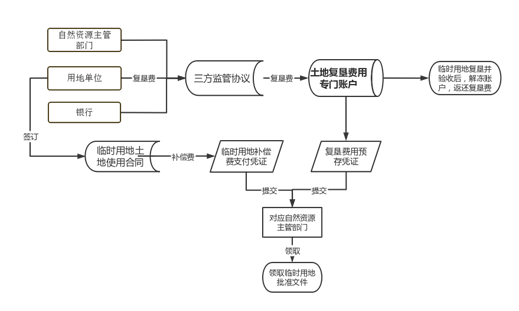 2、支取土地复垦费土地复垦义务人应当按照土地复垦方案确定的工作计划和土地复垦费用使用计划,向损毁土地所在地县级自然资源主管部门申请出具土地复垦费用支取通知书。县级自然资源主管部门应当在七日内出具土地复垦费用支取通知书。土地复垦义务人凭土地复垦费用支取通知书,从土地复垦费用专门账户中支取土地复垦费用,专项用于土地复垦。