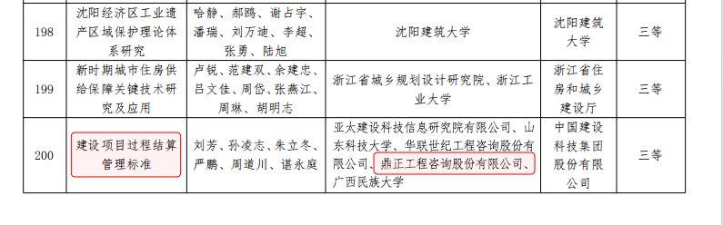 鼎正参与编制的《建设项目过程结算管理标准》(T/CECS 1178-2022)通过专业组和评审委员会的两级评审,从700余个报送项目中脱颖而出,荣获2024年度华夏建设科学技术奖三等奖。