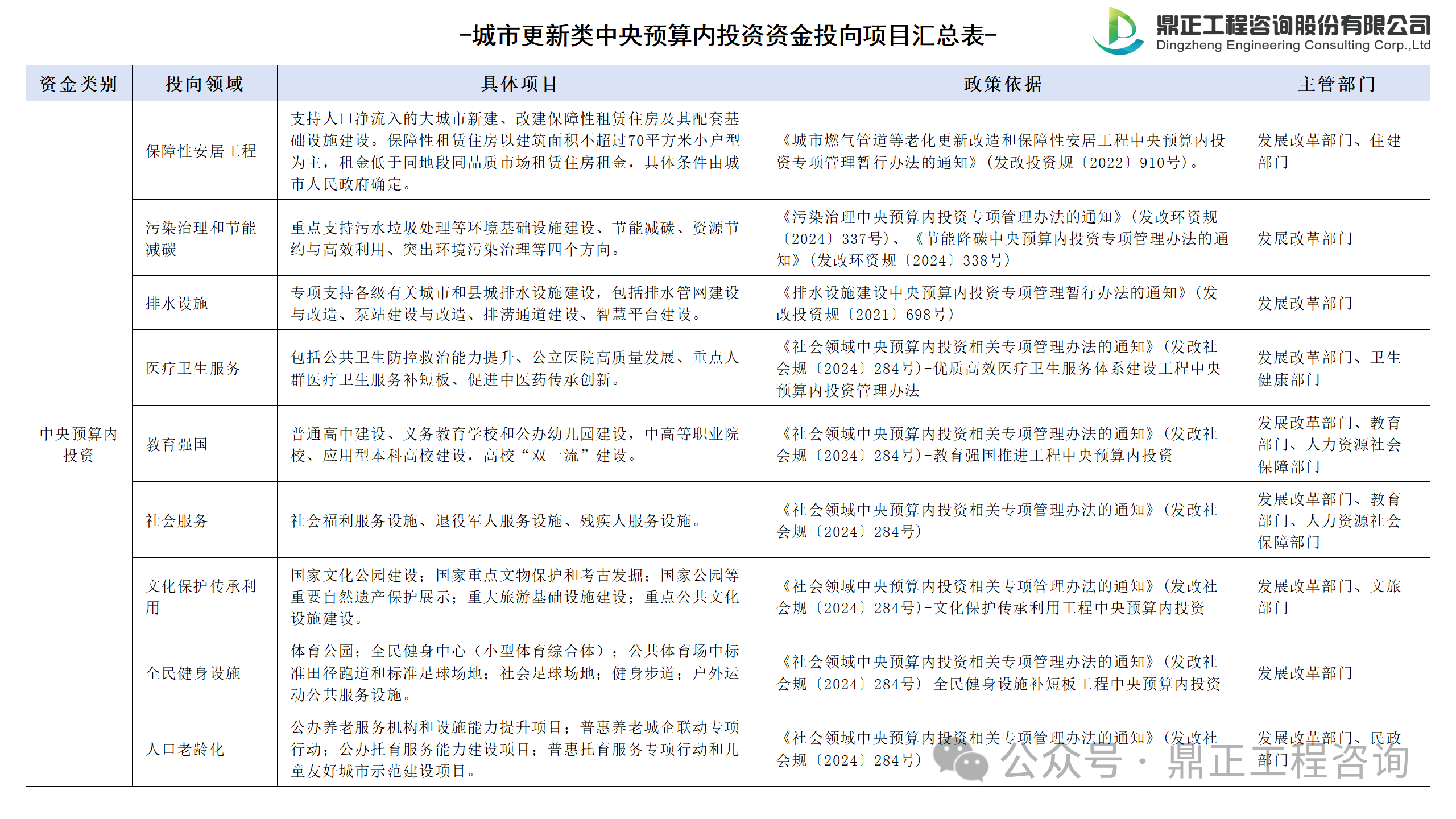 中央预算内投资是由国家发改委负责管理和安排的、用于固定资产投资的中央财政性建设资金,作为政府投资的一部分,不增加地方债务压力,无需偿还。中央预算内投资有系统、官方的政策文件,每个专项领域都有对应的专项政策文件。2025年安排中央预算内投资7350亿元。中央预算内资金重点解决民生短板问题,重点支持老旧小区及城中村房屋修缮、环境整治、配套设施完善等民生短板项目,涵盖燃气管网老化改造、供水管网漏损治理及危旧住房安全改造。