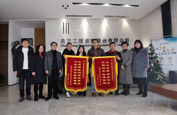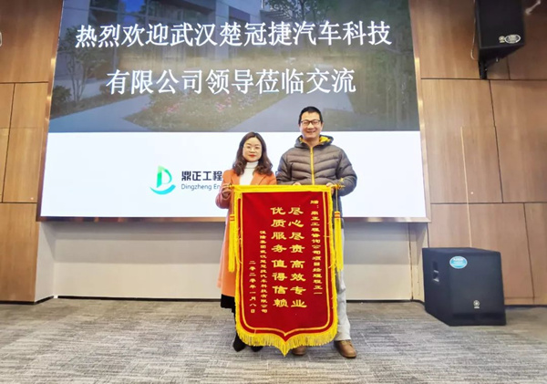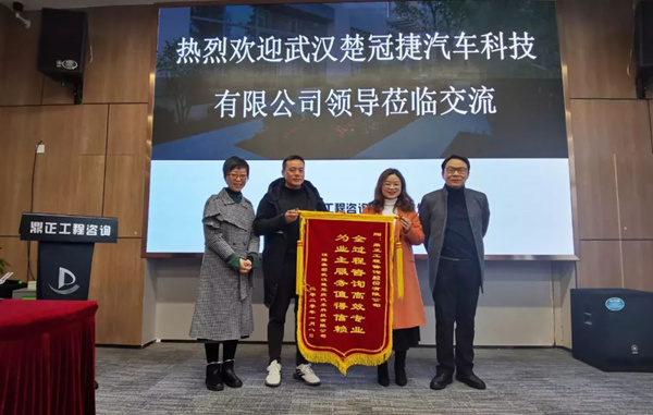 2020年1月14日,武汉楚冠捷汽车科技有限公司龚经理、朱主任莅临鼎正咨询公司,特向为其二期厂房建设项目提供全过程工程咨询服务的鼎正咨询团队及项目负责人程正一赠送锦旗并表达感谢。