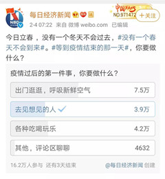 今天,2020年2月14日,一个特殊的情人节!想从一个近期的网络投票说起:“疫情过后的第一件事,你要做什么?”
