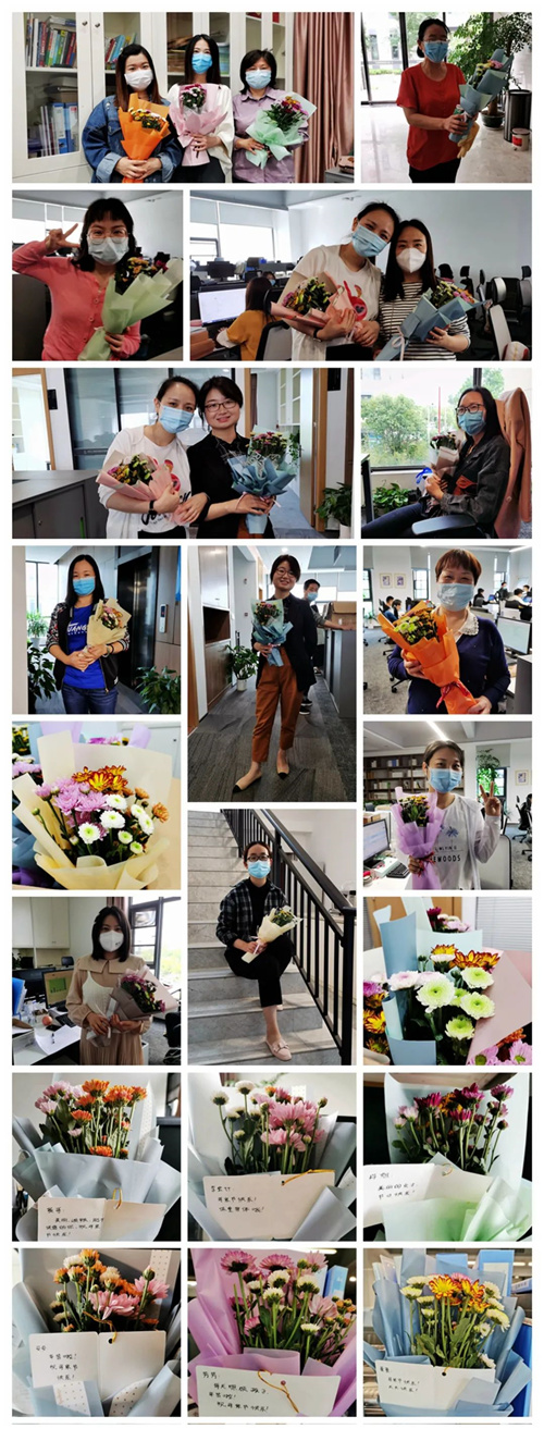 母亲节的前一天,公司给每位鼎正的职场妈妈们送上鲜花祝福,让这个母亲节充满温馨,更具仪式感。全体“鼎正妈妈”的欢颜笑语,把这份芬芳美丽也传递给了每位鼎正人。