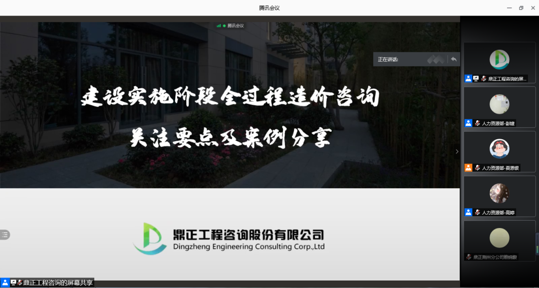 为提高鼎正造价咨询事业部同事业务水平,加强内部经验分享交流,2020年9月7日下午,鼎正人资部组织开展了《建设实施阶段全过程造价咨询关注要点及相关案例分享》培训,本次培训交流会由鼎正荆州分公司技术负责人李素娟、项目经理沈雯进行主题分享。