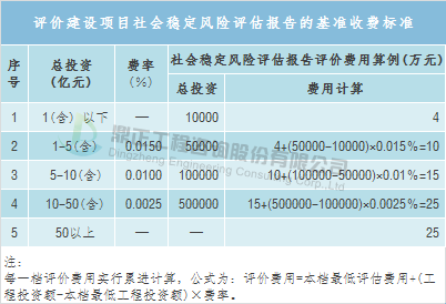 社会稳定风险评估咨询取费可参考地方收费标准,如上海市地方标准——《上海市重点建设项目社会稳定风险评估咨询服务收费暂行标准》(沪发改投〔2012〕130号),以估算总投资额为计费基数,根据建设项目不同的性质、内容和所处区域,采取按估算投资额分档定额计费。