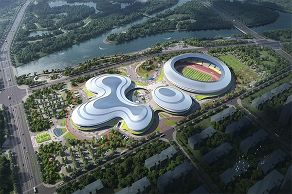 项目概况:本项目总建筑面积约8.8万㎡,建设内容包含体育场、体育馆、游泳馆、羽乒馆、剧院及道路、绿化、室外运动场所等配套建设设施,可承接省级以上运动赛事的体育场馆。
